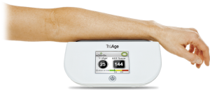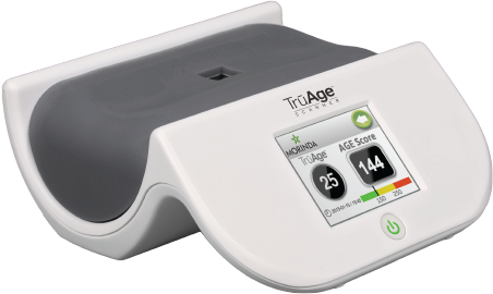 Le scanneur TrūAge est un outil éprouvé cliniquement qui mesure sans douleur et en quelques secondes les niveaux d’A.G.E.s d’une personne sans prise de sang ni échantillon d’urine. Lorsqu’exposés aux rayons ultraviolets, les A.G.E.s peuvent se voir grâce à un appareil appelé spectromètre. Le scanneur émet un faible rayonnement ultraviolet qui illumine les AGE sur votre peau.