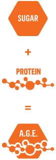 Le glucose (élément constitutif du sucre) est la principale source d’énergie pour nos cellules. Mais, c’est aussi un élément qui réagit avec le collagène. De cette interaction naissent des produits appelés « Terminaux de Glycation avancée » (ou A.G.E.s). Ils sont responsables de la perte d’élasticité cutanée, ils accélèrent l’apparition des rides, des ridules et ralentissent la croissance cellulaire.